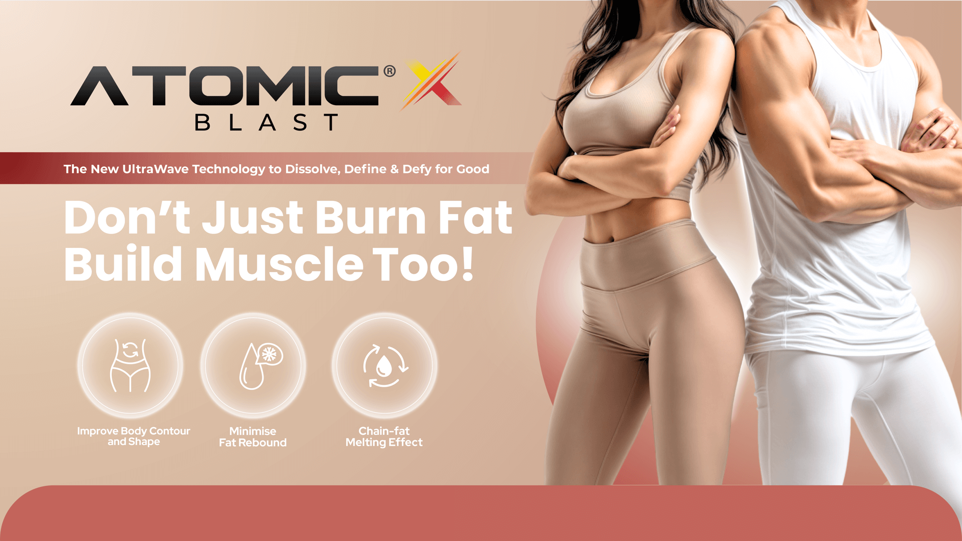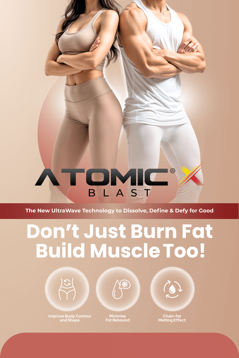 Atomic Blast® X is a cutting-edge body contouring treatment that uses UltraWave technology to support your body in improving your body contour and shape, breaking down stubborn fat, and enhancing definition—all without needles or downtime.
